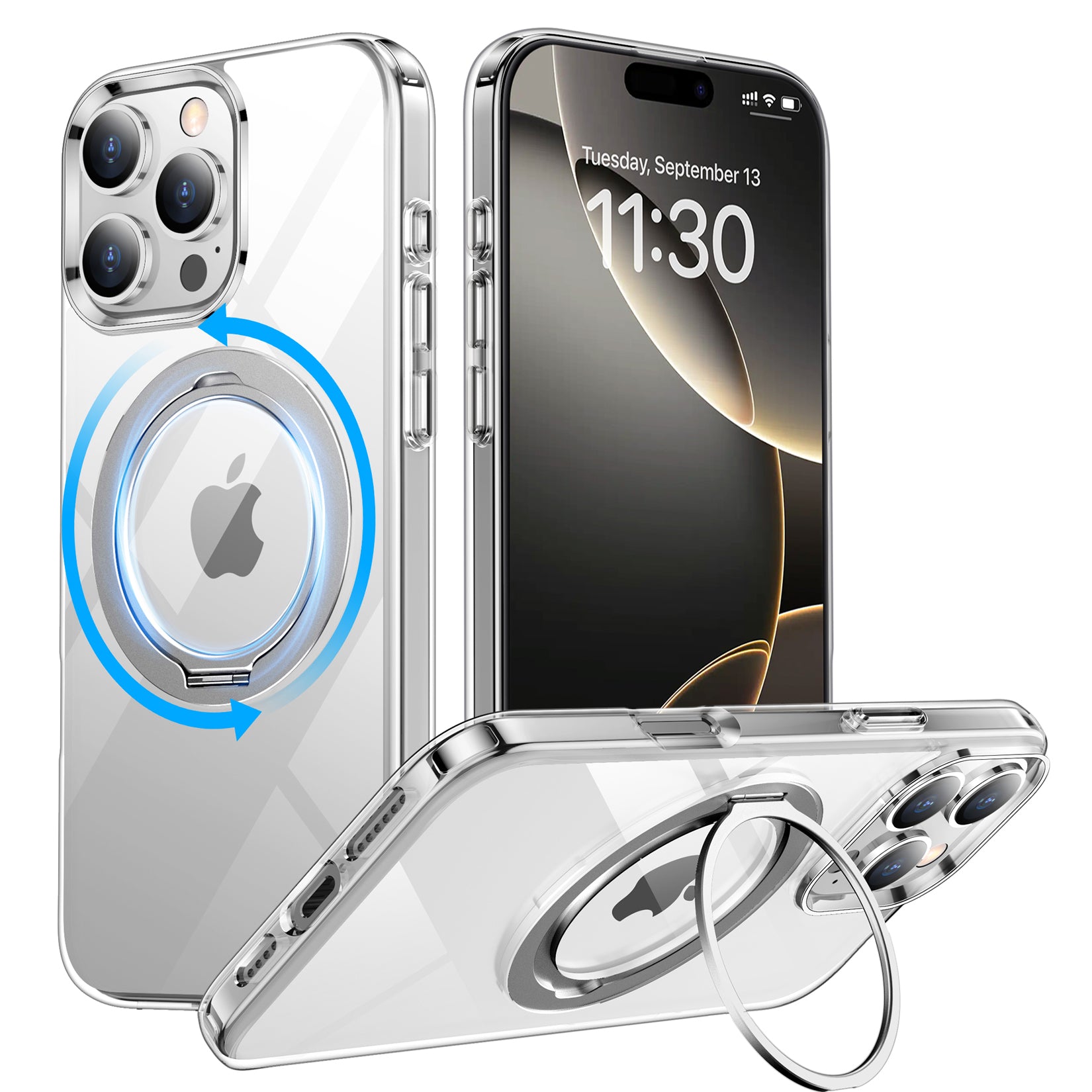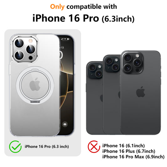 Temdan Designed for iPhone 16 Pro Case, 360°Rotatable Ring Stand Case Compatible with MagSafe Military-Grade Protection Magnetic Kickstand Case 6.3 inch-Clear