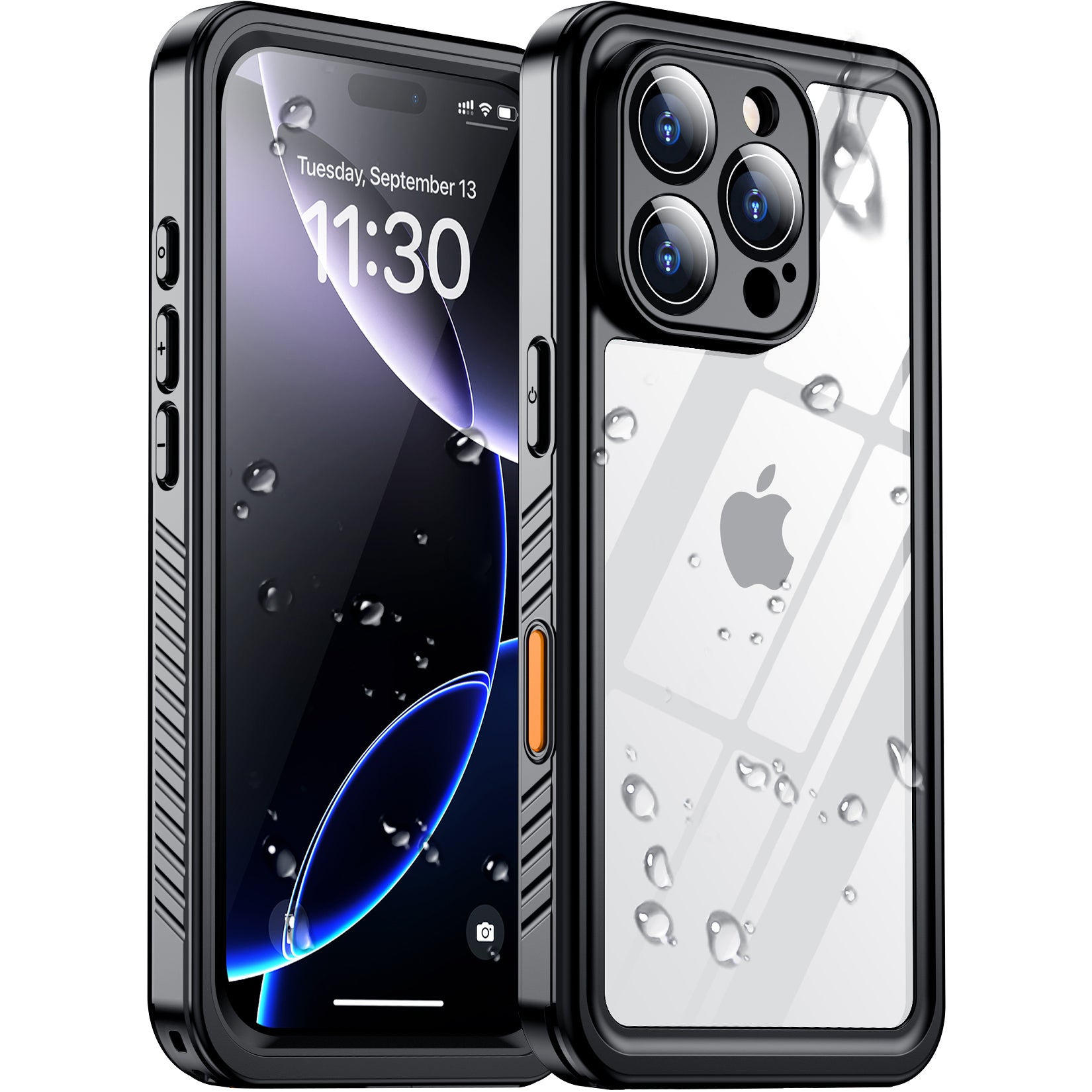 Temdan Compatible with iPhone 16 Pro Case Waterproof, Built-in Screen & Camera Protector IP68 Underwater Full Body 16FT Military Dropproof Shockproof Phone Case 6.3"-Black/Clear