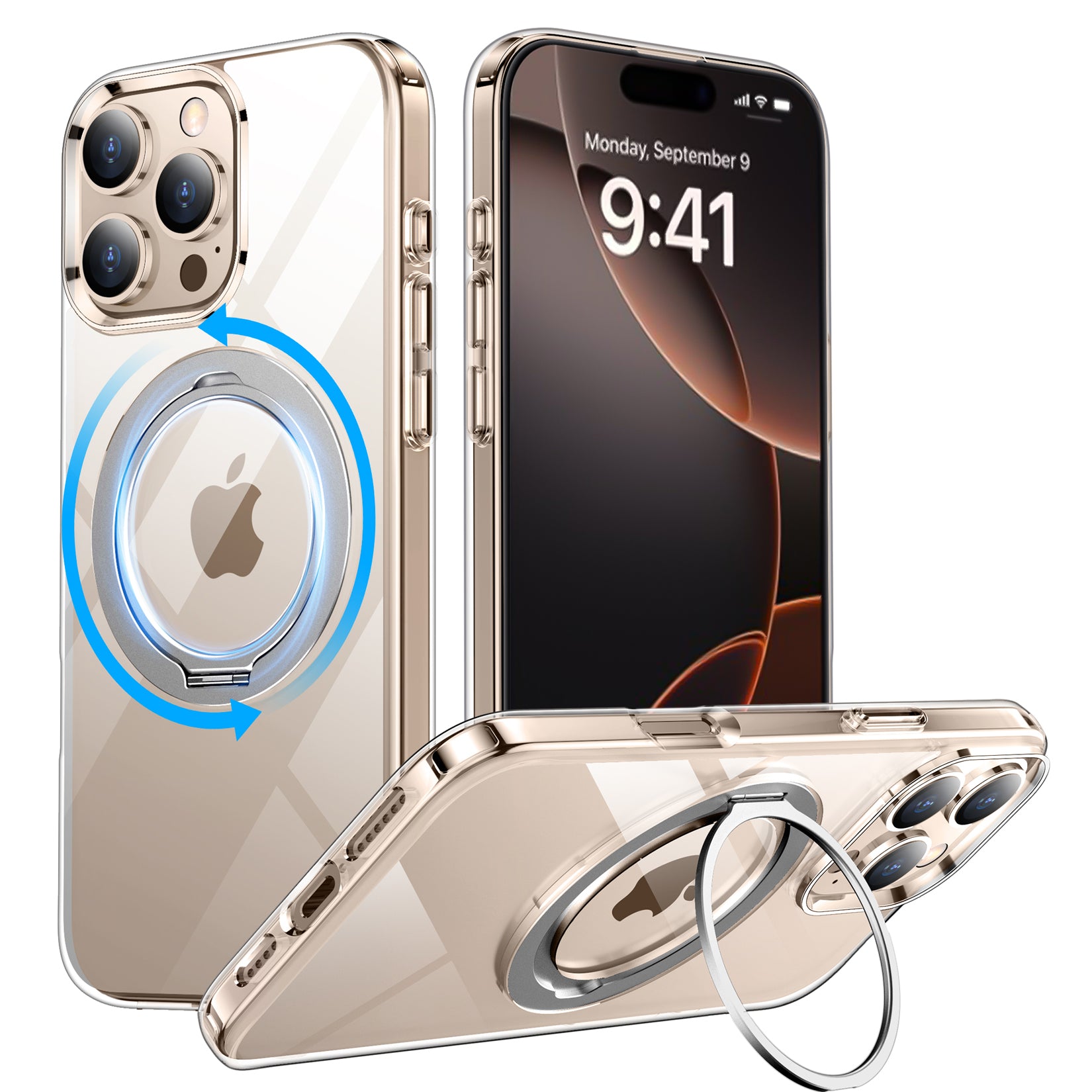 Temdan Designed for iPhone 16 Pro Max Case, 360°Rotatable Ring Stand Case Compatible with MagSafe Military-Grade Protection Magnetic Kickstand Case 6.9 inch-Clear