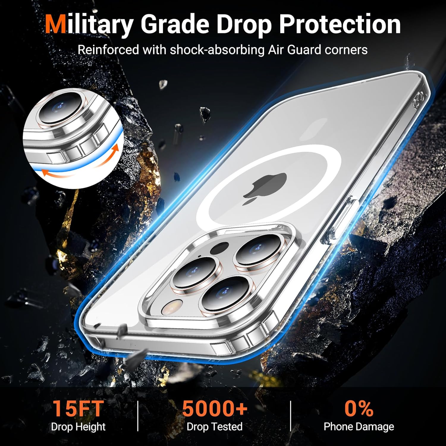 Temdan for iPhone 13 Pro Case Clear, Compatible with Magsafe, Anti-Yellowing, Military-Grade Protection, Shockproof Slim Magnetic Phone Case Cover, Transparent