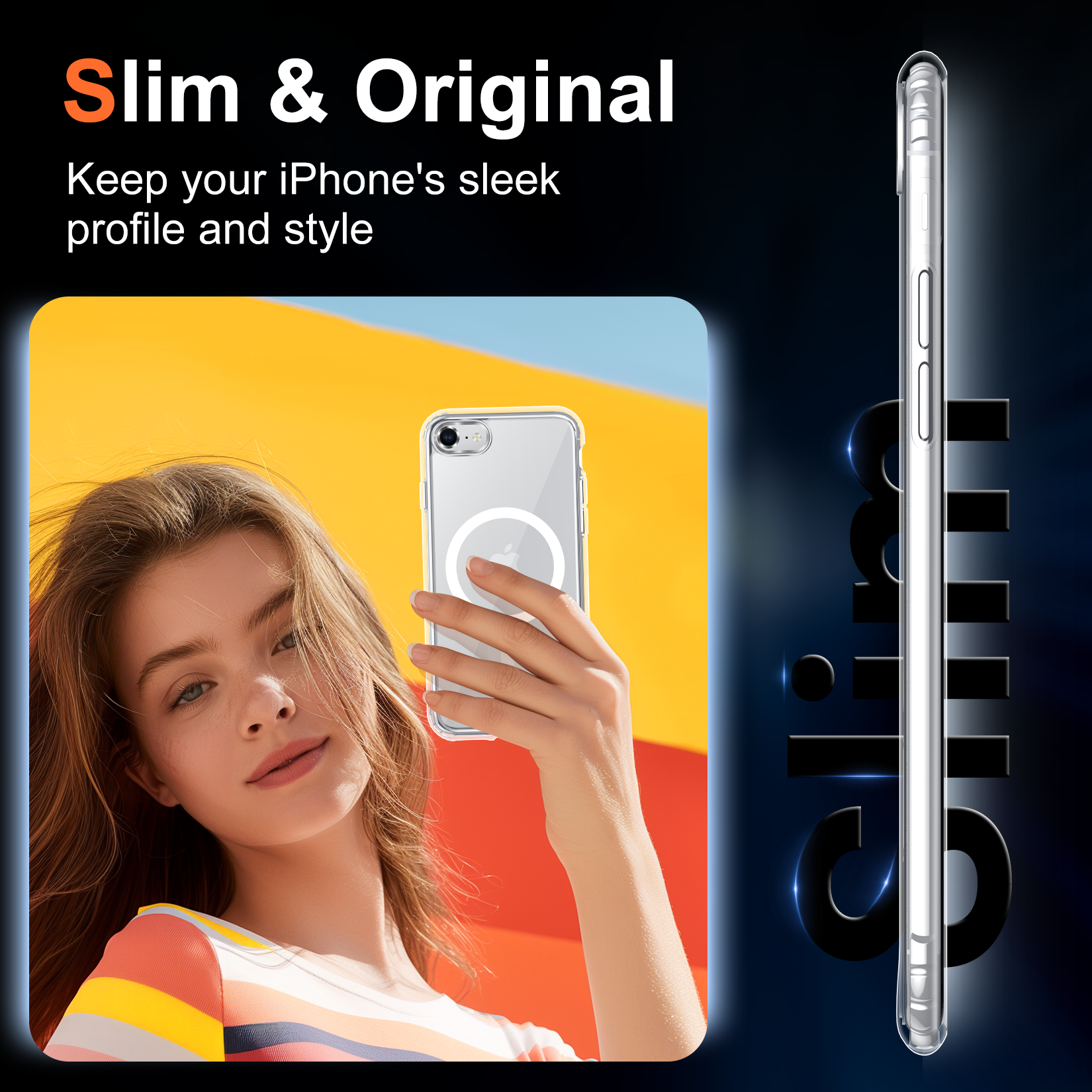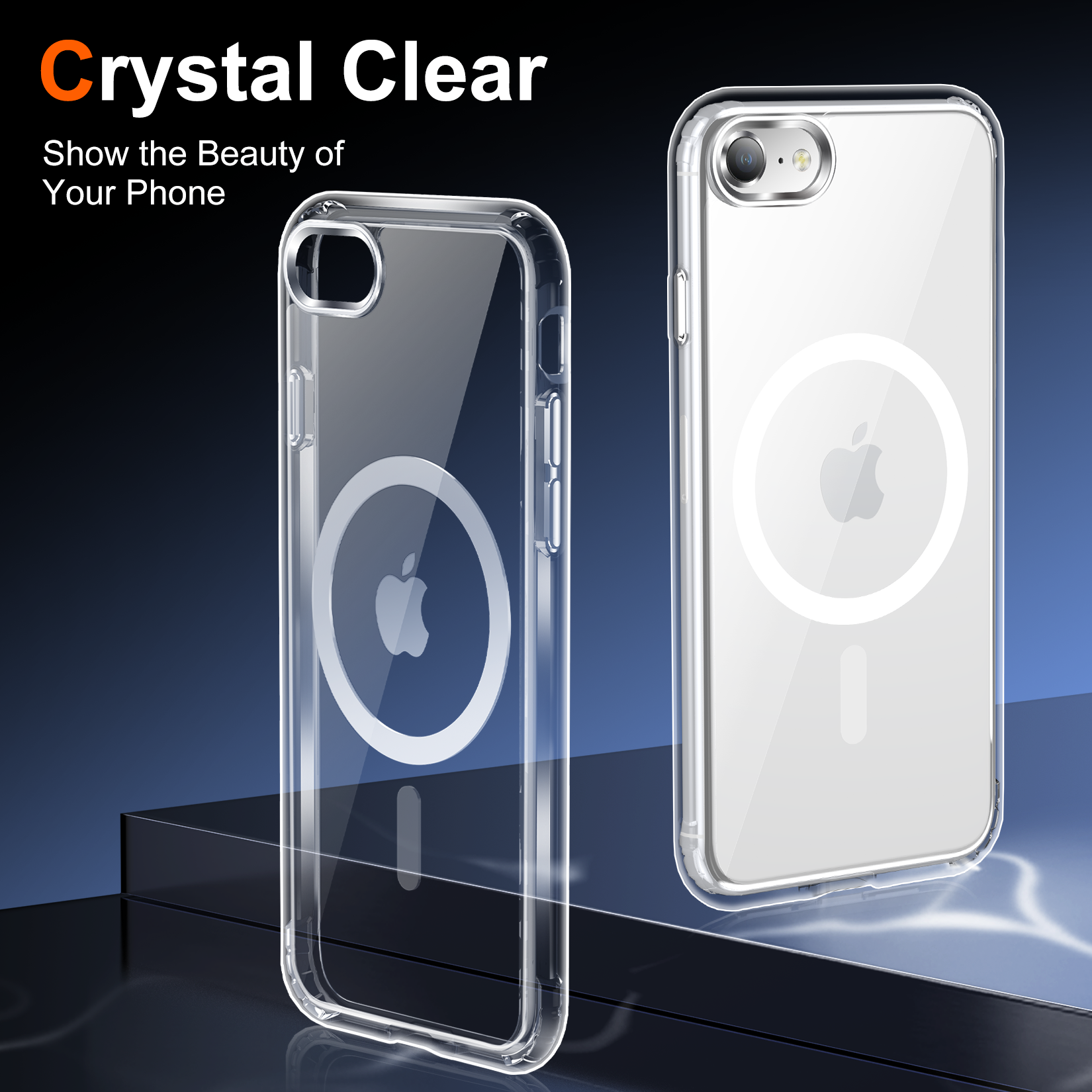 Temdan for iPhone SE Case 2022/2020/3rd/2rd Clear with Screen Protector, Compatible with Magsafe, Anti-Yellowing, Military-Grade Protection, Shockproof Slim Magnetic Phone Case Cover, Transparent